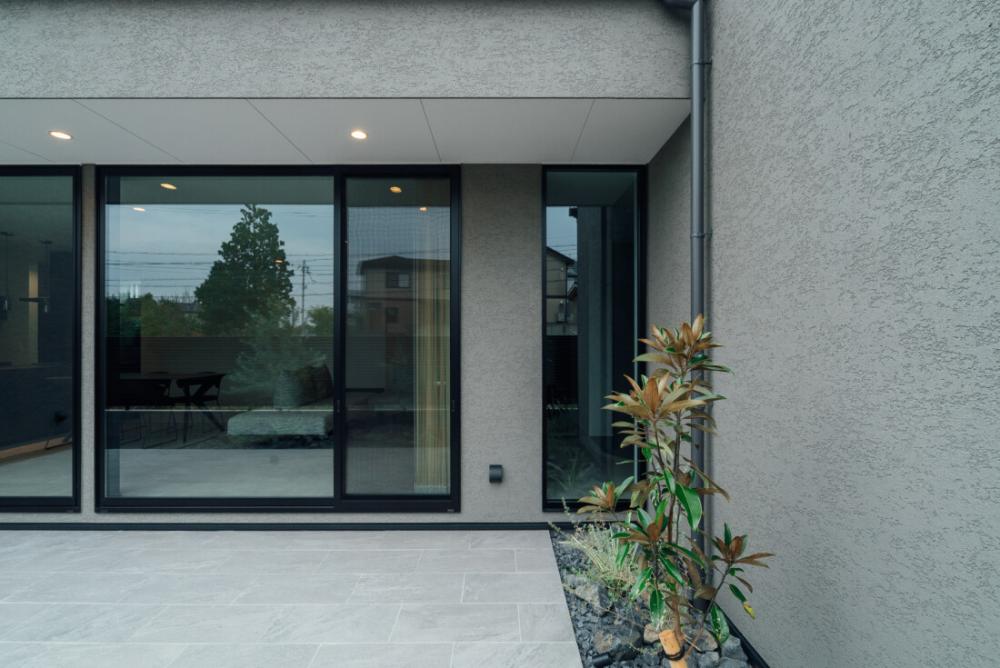 ガレージの開口部分に勾配をつけ、スクエアな印象に少しアクセントを加えました。