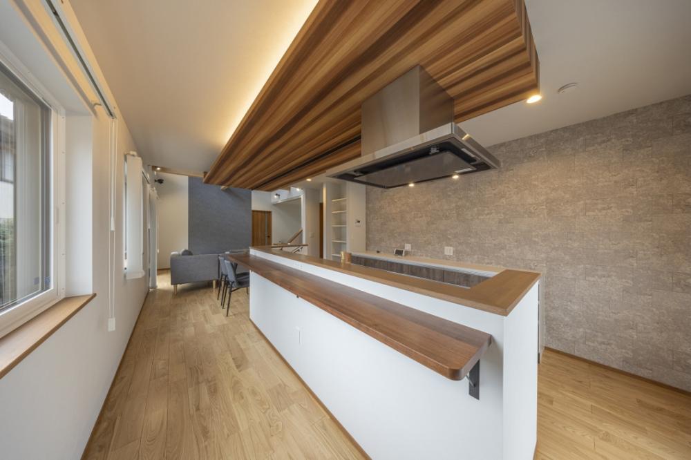 キッチンにはバーカウンターを組み込み、趣味やくつろぎの時間を楽しめる場所に仕上げました。