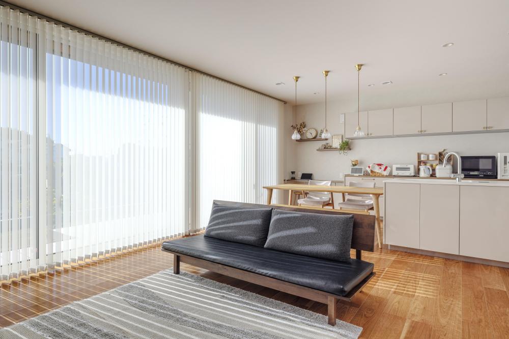 大開口窓から日差しがたっぷり差し込む広々としたLDK