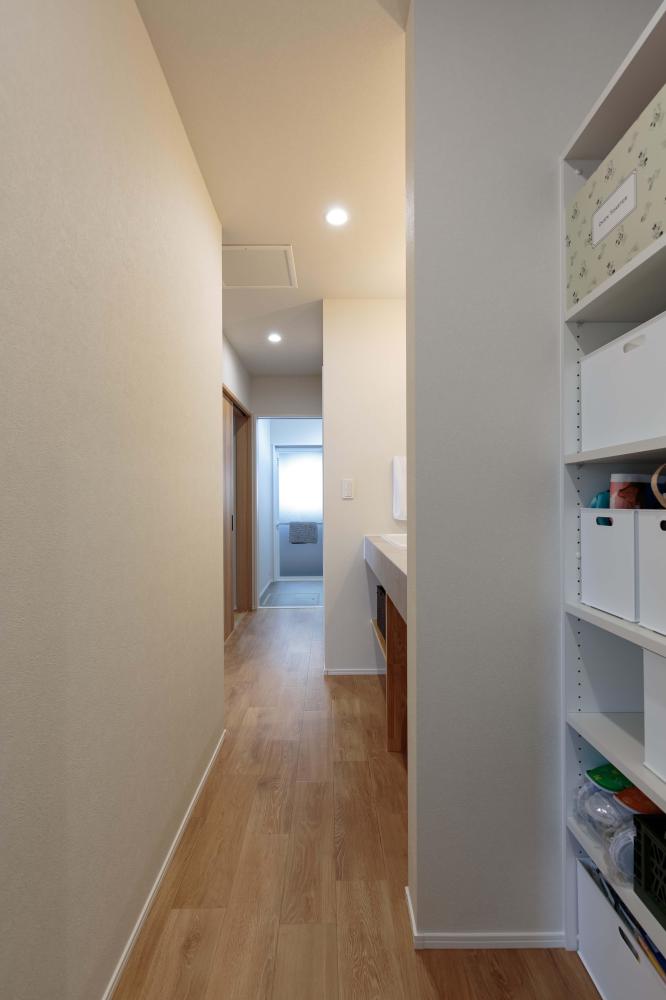 ②使い勝手のよい動線。買いだめした食材の収納