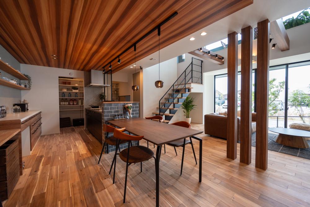 ダイナミックな吹抜のある明るく開放的なリビングをはじめ、大容量のパントリーやスタディーコーナーを備えたキッチン、キッチン側の小上がりのタタミコーナー、勉強や読書に最適なアンダースキップ、1Fに回遊性のある動線をもたらすサーキュレーションプランの採用、洗濯+乾燥+たたむ+収納までがここで行えるランドリースペース&ファミリークローゼット、帰宅後すぐに手洗いできる洗面スペース、明るく開放的な2Fホール、趣味やキッズスペースとして活用できる多彩なスキップフロア&スキップロフト等、実際の住まいづくりに役立つアイデア満載のモデルハウスです。