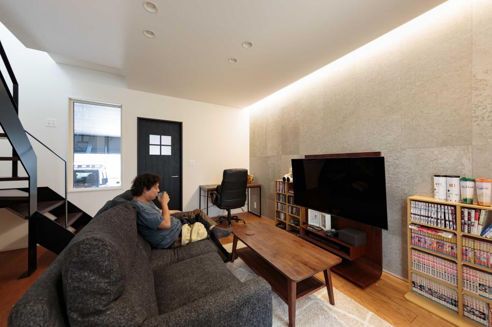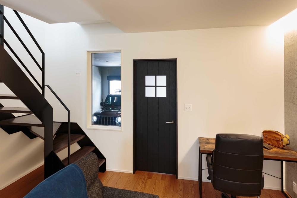 LDKの窓から愛車をいつでも眺められるビルトインガレージが魅力的なお家です。