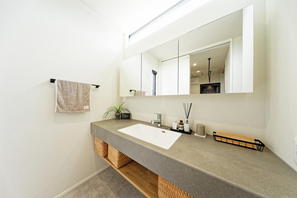 ナチュラルテイストの木質感あるれる内装と、ガルバリウムのカッコ良い外観を組み合わせました。独立洗面台やファミリークローゼット、パントリーなど、家事動線や収納量にもこだわりました。