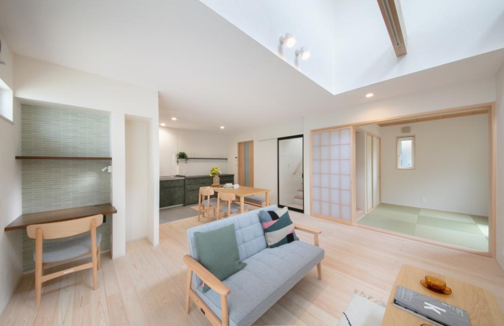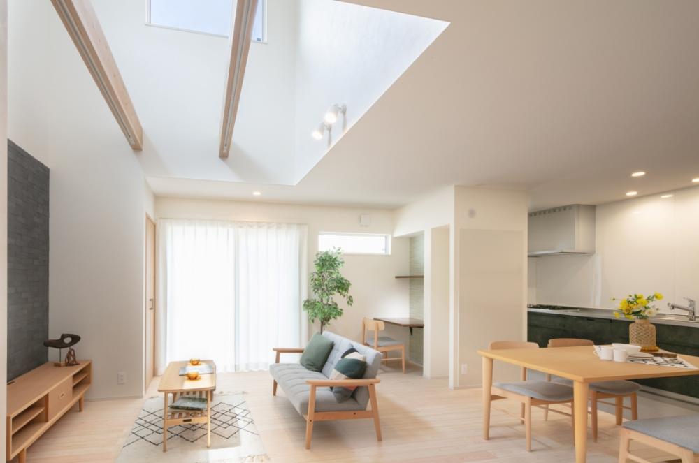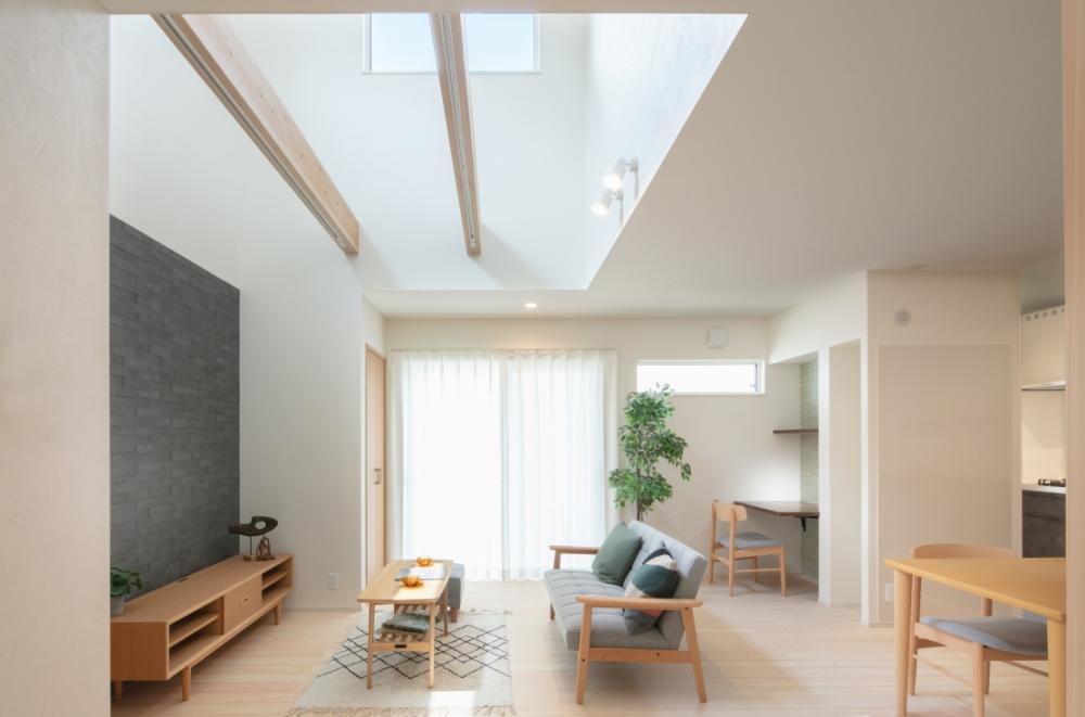 日当たりがよくない敷地だったため、吹き抜けを採用して明るいリビングに。