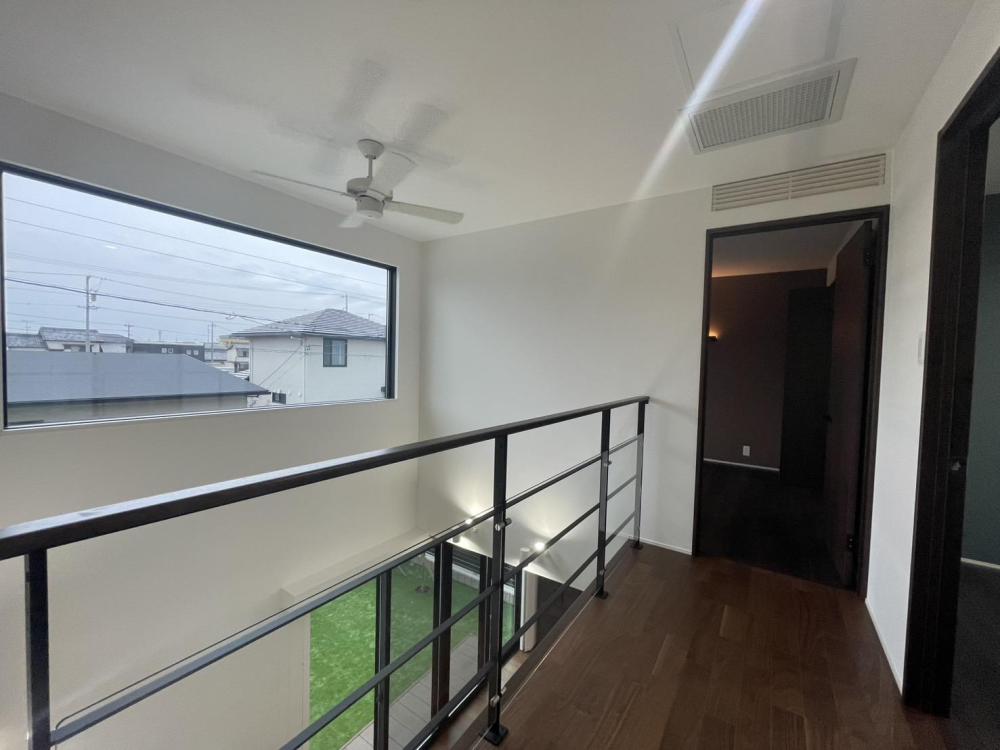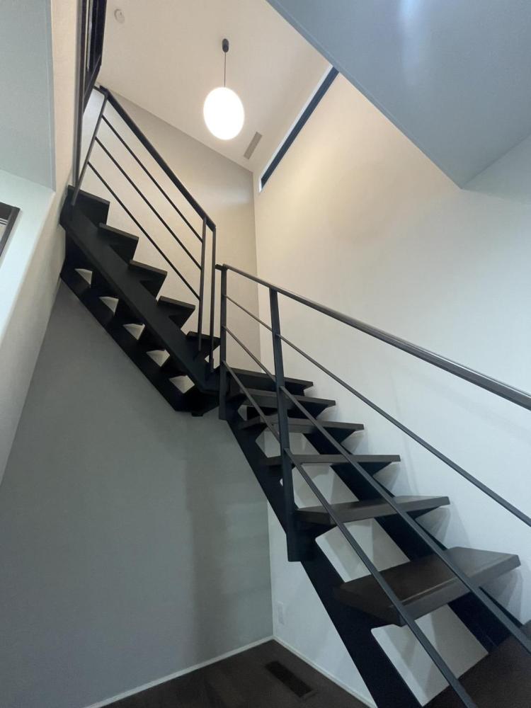 開放感と大空間のため、ハイユニット、大きな窓、吹き抜け、スケルトン階段など余すことなく取り入れた。あれもこれもやるとやり過ぎ感や統一感のなさに繋がるため、配置や配色などを工夫しながら採用。