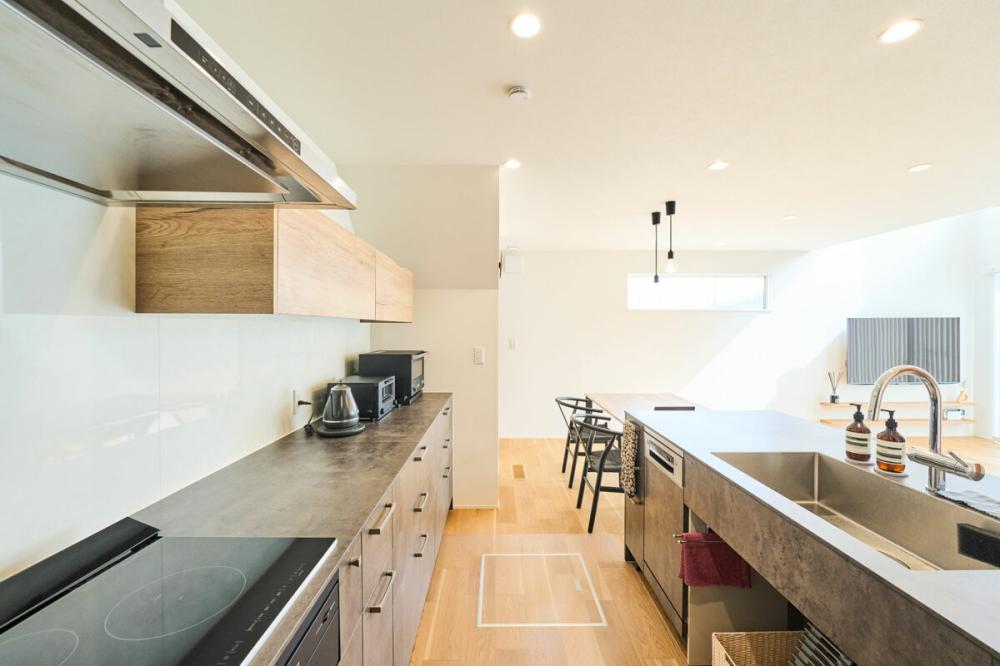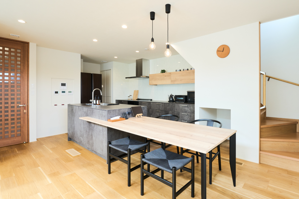 様々なハウスメーカーの見学を重ねる中で、ご提案した外観とトレンドを取り入れたお洒落さ、日常の生活動線を考慮した間取りが、おしゃれなご夫婦の理想と合っていると感じていただき、建築をさせていただきました。