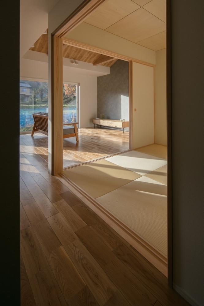 南から差し込む自然光が心地よく、和室の琉球畳やシナ合板の優しい質感が安らぎを与えます。