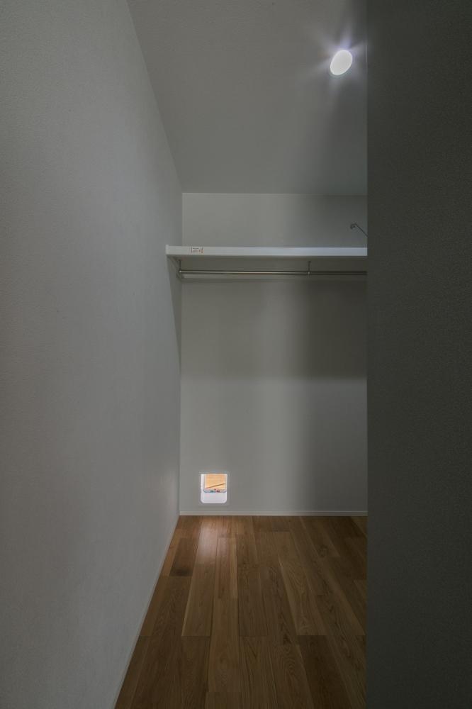 猫が自由に歩き回れる小さな扉や、木の温もりを感じられる梁組が特徴です。