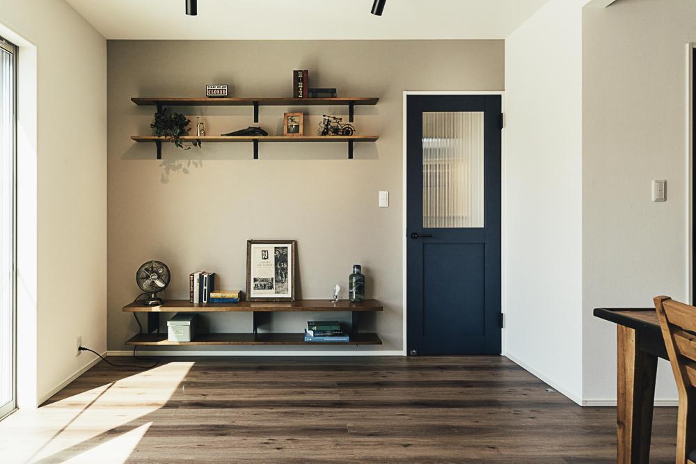 室内はヴィンテージ感のある落ち着いた雰囲気で統一され、ダークブラウンやネイビーが効いたメンズライクでかっこいい印象に。