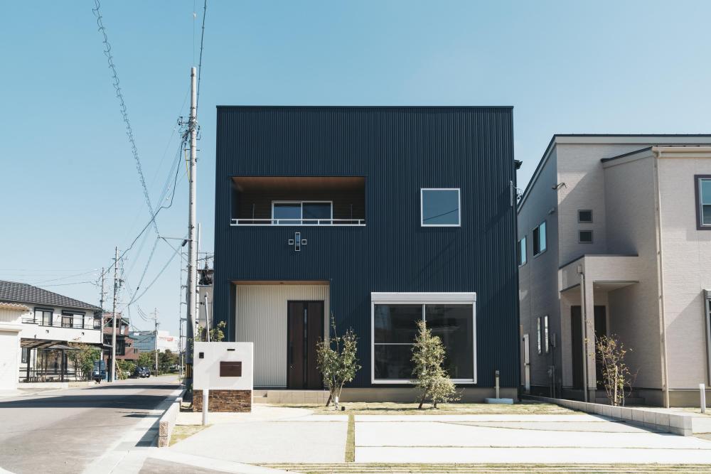 外観は、メンテナンスがラクなガルバリウム鋼板を使ったキューブ型のデザイン。