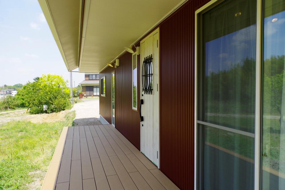 外観は赤いガルバで存在感アップ。